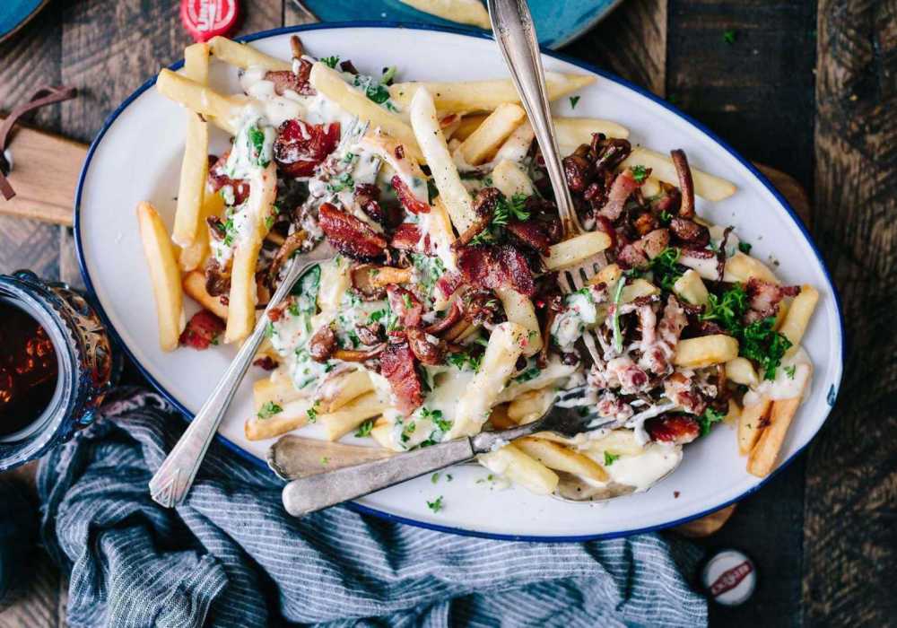 I know, what could be better that a steaming plate of fries, gravy and cheese curd? Fries, gravy, cheese curd and bacon, that’s what! Throw in some fresh shallots, chilli, and a splash of roasted bone marrow and duck gravy, and we turn this popular French-Canadian dish into a something sublime.